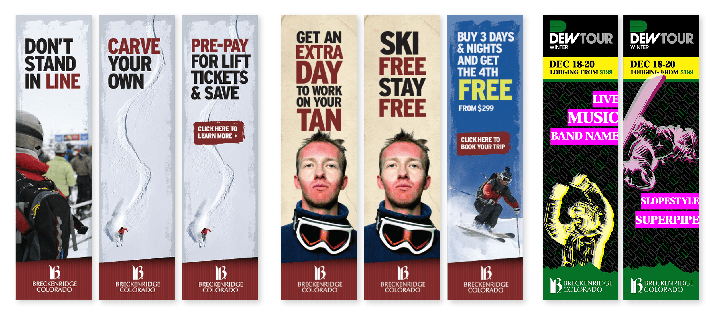 A few examples of display ad creative for various promotions for Breckenridge reosrts.
